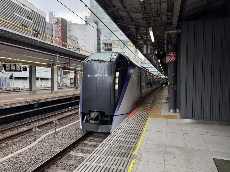 8時ちょうどの出発を待つ空気は、どこかそわそわしていて、これから始まる旅の幕開けを告げていました。三連休の週末。車内には高揚感と静かな期待が混ざり合い、都会のビル群はゆっくりと遠ざかっていきます。