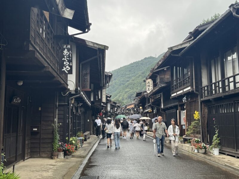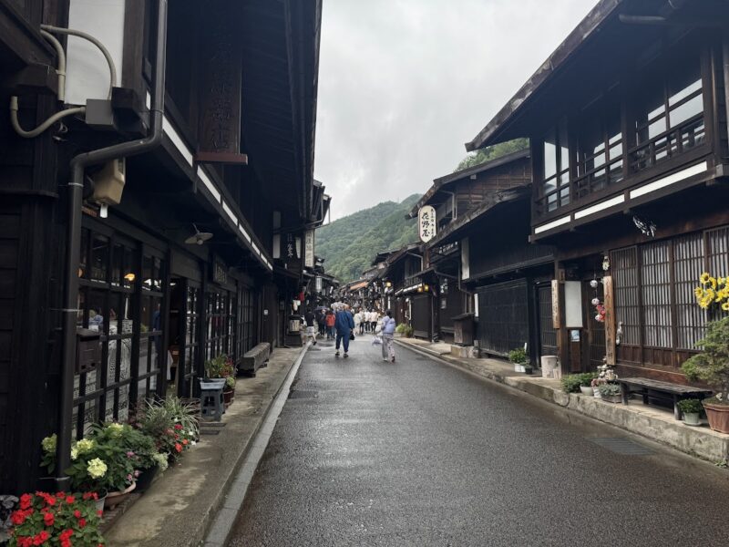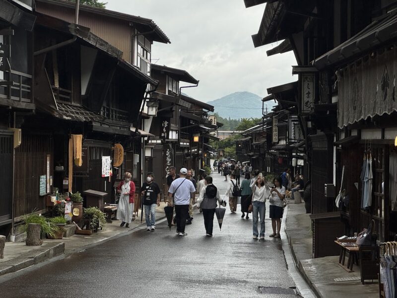 中山道随一の長さを誇るこの宿場町には、漆の文化や木曽ひのきが息づき、職人たちの暮らしが静かに受け継がれています。雨上がりの石畳、まっすぐ伸びる古い家並み、ふと漂う五平餅の香り——。歩くほどに心がほどけていくような、穏やかな木曽路の旅へとご案内します。